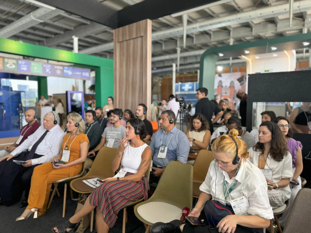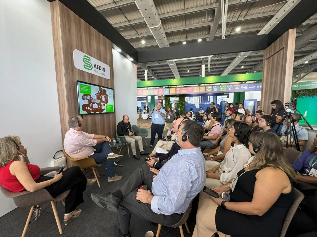 Muita gente estudiosa e empenhada em novos e eficazes processos em meio ambiente palestraram no estande da AEDIN, que fez uso do conceito de palestras silenciosas, em que a plateia ouve o palestrante somente por meio de fones de ouvido. Teve gente importante e que palestrou inclusive de forma remota.