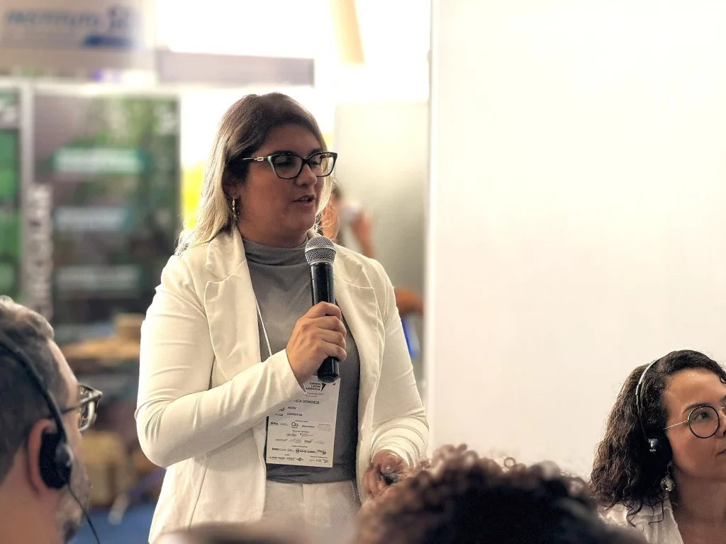 Fernanda Candeias, presidente da AEDIN, participou da abertura do evento e disse: “Hoje é um dia muito especial. Representar a Associação das Empresas do Distrito Industrial aqui para a gente é um marco. Mostrar o quanto as indústrias são fundamentais para essa pauta de sustentabilidade que é tão relevante. Estamos falando do maior distrito industrial do Rio de Janeiro. Quando falamos em Santa Cruz, não devemos falar que é o final do Rio de Janeiro, mas sim o começo”.